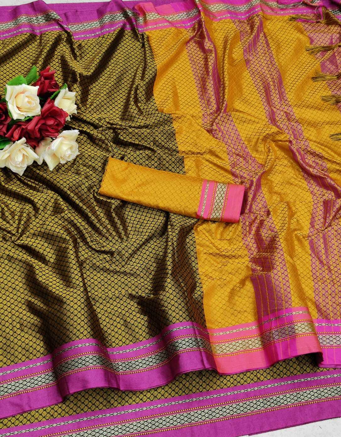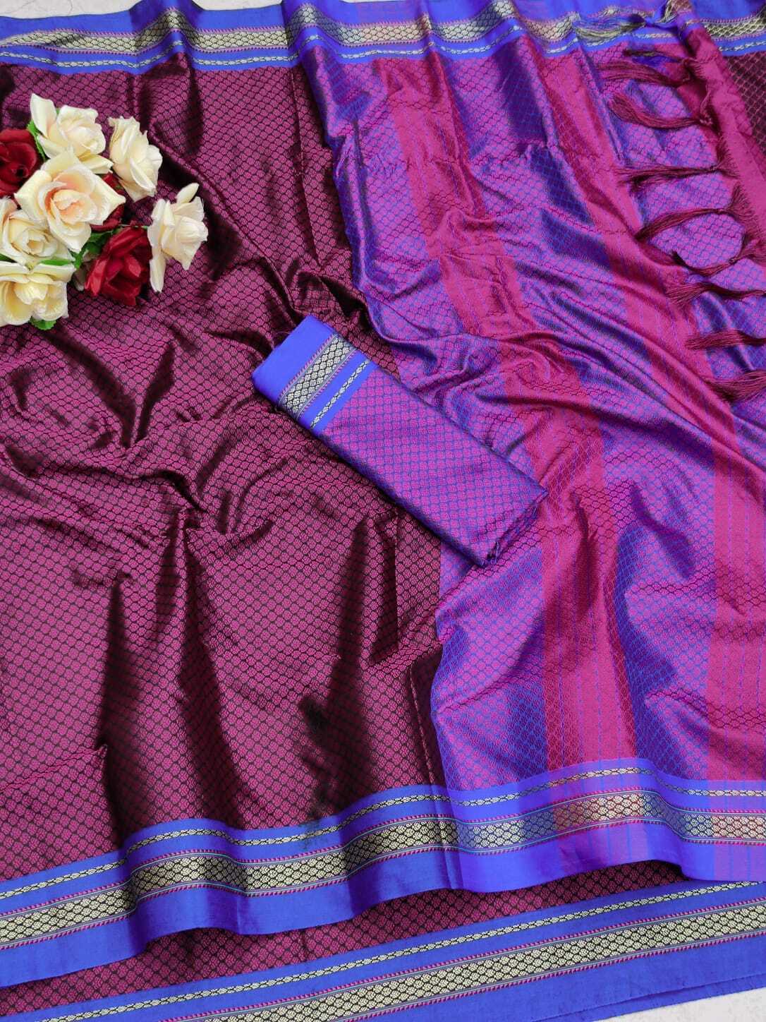 एथनिक पहनावे के लिए रैपियर सिल्क मीना जरी वर्क साड़ी