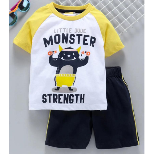शॉर्ट्स सेट के साथ वॉशेबल किड्स हाफ स्लीव टी शर्ट