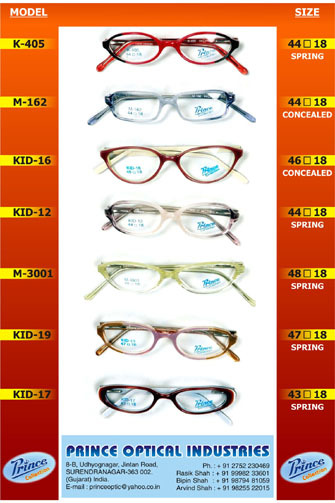 प्रिंस ऑप्टिकल इंडस्ट्रीज, 1974 में गुजरात के सुरेंद्रनगर में स्थापित, भारत में ऑप्टिकल चश्मा और धूप का चश्मा का टॉप निर्माता,आपूर्तिकर्ता है। प्रिंस ऑप्टिकल इंडस्ट्रीज ट्रेड इंडिया के सूचीबद्ध उत्पादों के सत्यापित और विश्वसनीय विक्रेताओं में से एक है। आपूर्ति और व्यापार के अपने व्यापक अनुभव के साथ, प्रिंस ऑप्टिकल इंडस्ट्रीज ने उच्च गुणवत्ता आदि के साथ बाजार में अपने लिए एक प्रतिष्ठित नाम बनाया है। ग्राहक केंद्रित दृष्टिकोण पर ध्यान केंद्रित करते हुए, प्रिंस ऑप्टिकल इंडस्ट्रीज की अखिल भारतीय उपस्थिति है और पूरे देश में एक विशाल उपभोक्ता आधार को पूरा करता है। प्रिंस ऑप्टिकल इंडस्ट्रीज से ट्रेड इंडिया के गुणवत्ता-सुनिश्चित उत्पादों () को थोक में खरीदें।