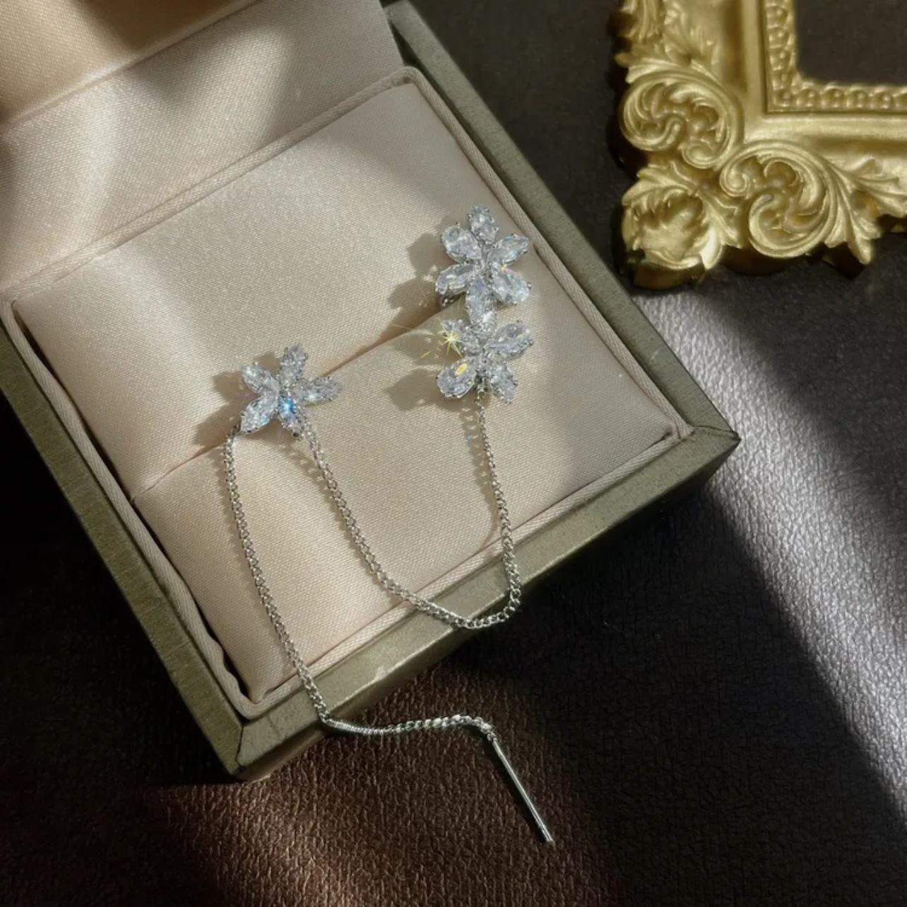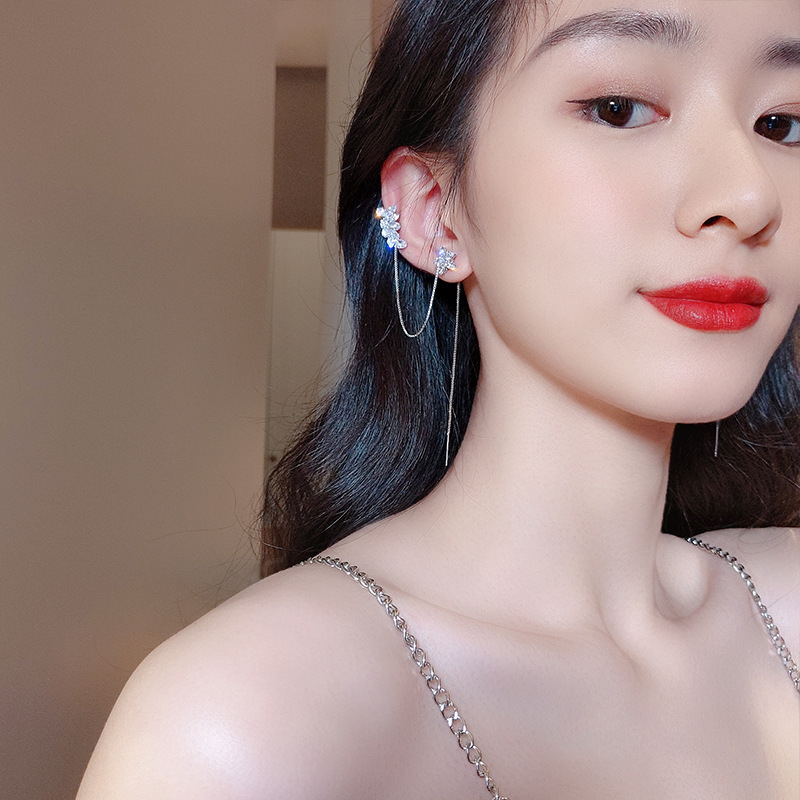 Explore in english - Silver-plated Floral Stone Studded Ear Cuff Threader Earrings