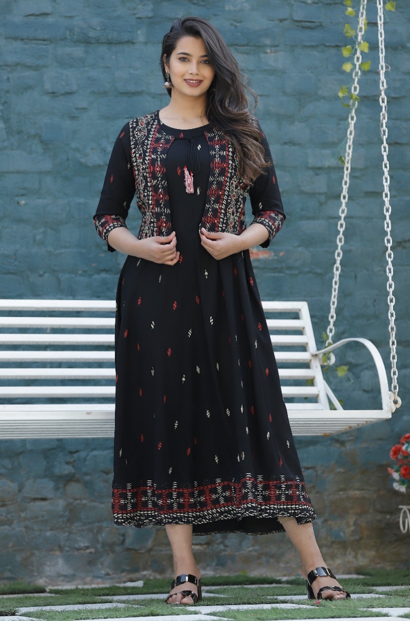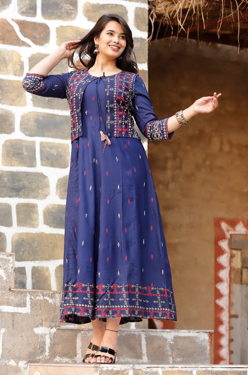 Explore in english - Koti Designer Fancy Rayon Long Kurtis
