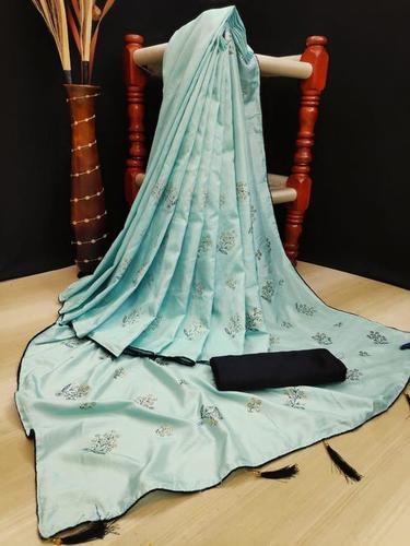 क्रीम रंग की महिलाओं की क्रश चिनोन साड़ी ब्लाउज़ और कमर बेल्ट के साथ
