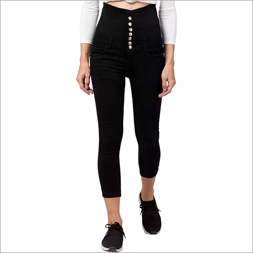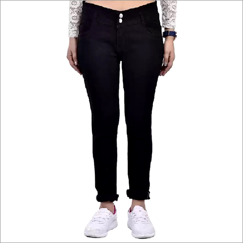 वॉशेबल लेडीज़ 5 बटन ब्लैक जींस