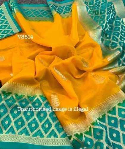 जॉर्जेट बनारसी प्योर हैंडवॉवन खड्डी शिफॉन कडवा साड़ी