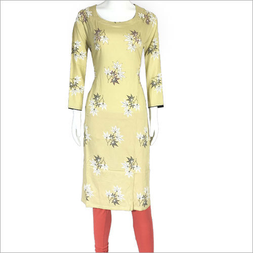 Explore in english - Ladies Beige Color Round Neck Long Kurti