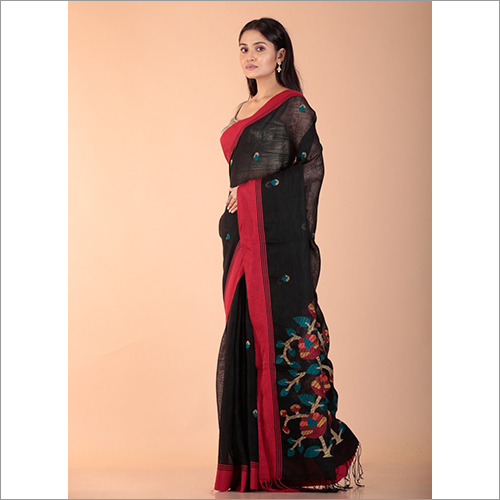 पारंपरिक महिलाओं की काली लिनन जामदानी साड़ी
