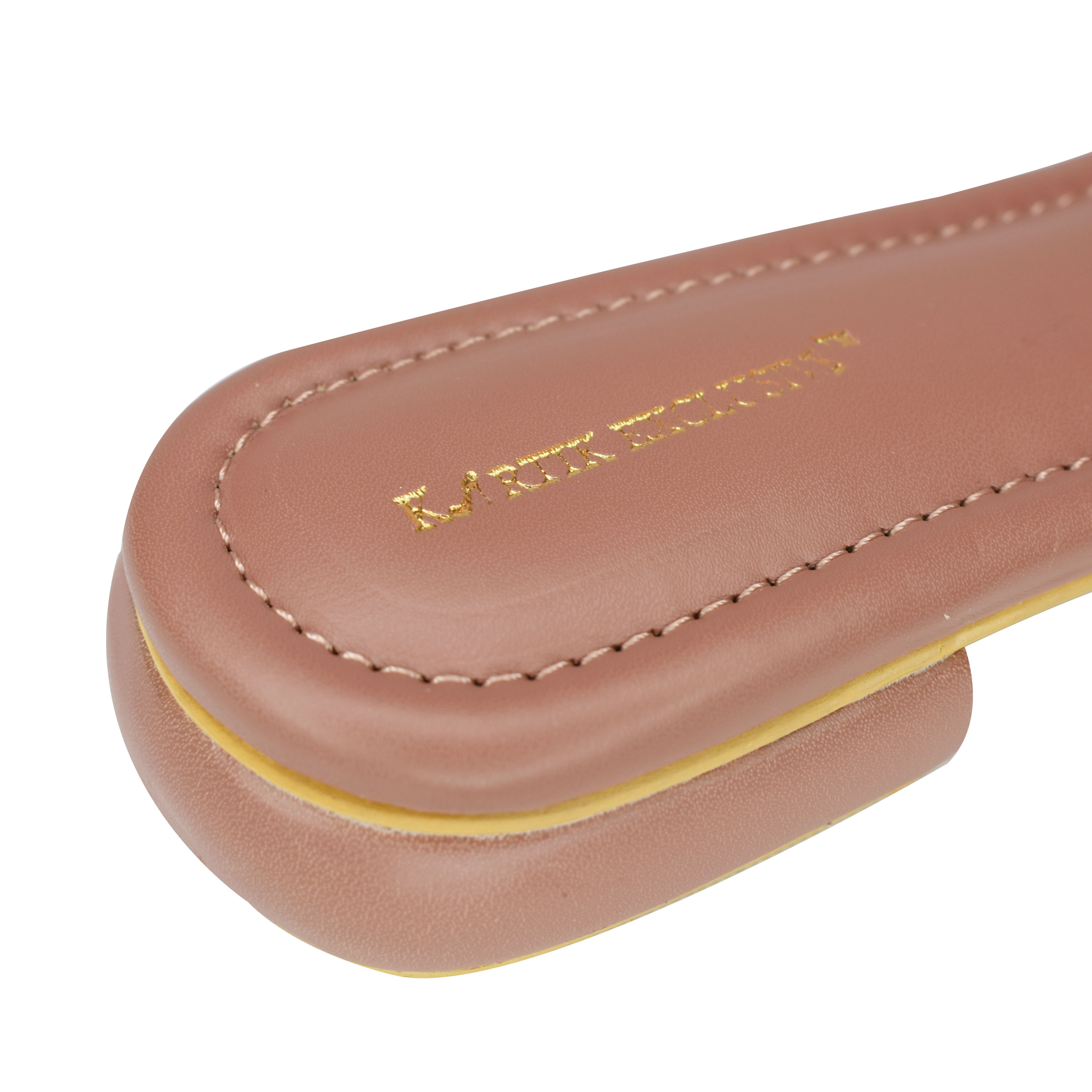 लेदर लेडीज़ ब्राउन गोल्डन चेन ब्लैक फ्लैट सैंडल