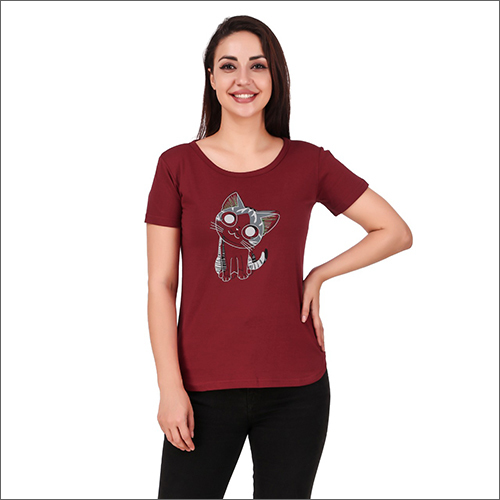टॉप लेडीज़ कैट प्रिंट व्हाइट टी-शर्ट