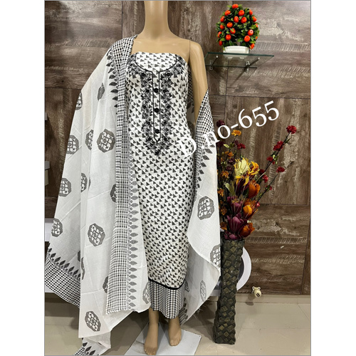 - महिलाओं के लिए चंदेरी सिल्क एम्ब्रॉयडरी सूट इनयर के साथ