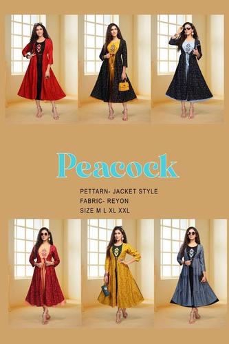 विभिन्न रंगों में उपलब्ध लेडीज़ डिज़ाइनर स्लीव फुल लेंथ कुर्ती