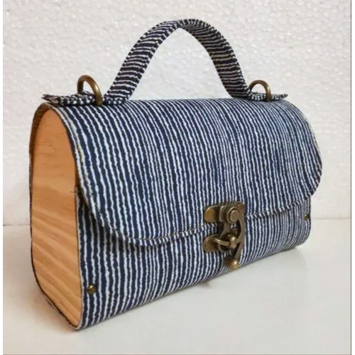 ब्लू-व्हाइट-ब्राउन लेडीज़ कॉटन और रेयॉन पार्टी बैग