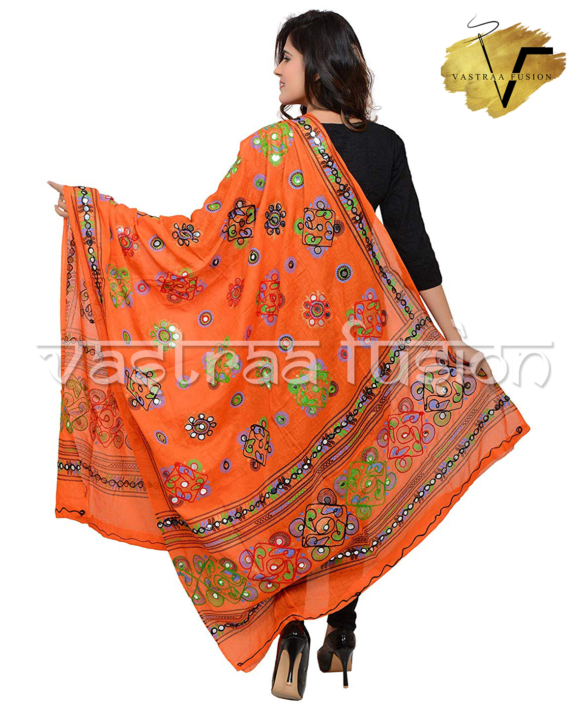 Explore in english - Ladies Cotton Embroidered Chakachak Aari Kutch Dupatta