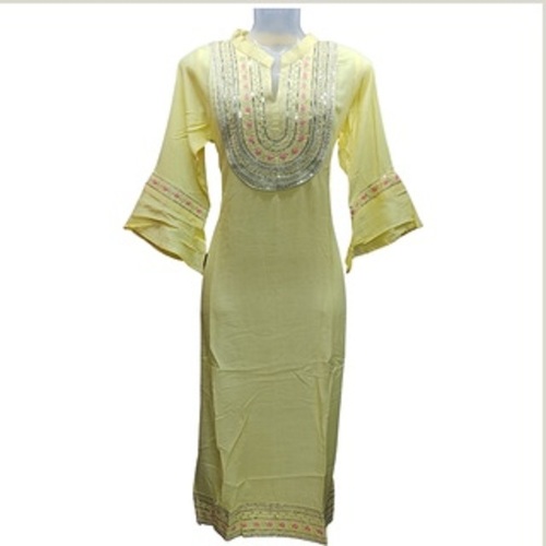 Explore in english - Ladies Cotton Kurti White Colour With Blue Color Designs And 3/4th Sleeves