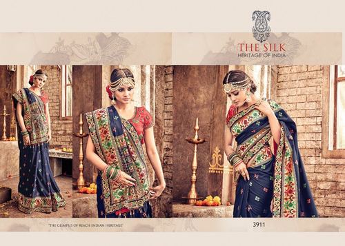 ब्लू लेडीज़ डिज़ाइनर फ़ेस्टिवल वियर सिल्क साड़ी
