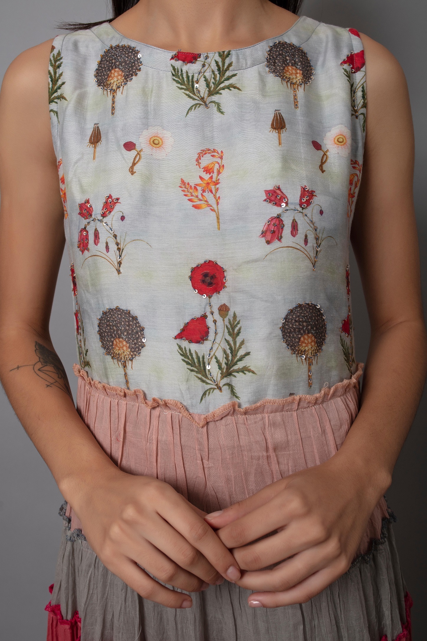 टू टोन कलर थ्रेडी एम्ब्रॉयडरी फैंसी कुर्ती ट्यूनिक