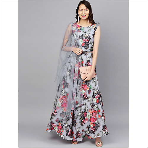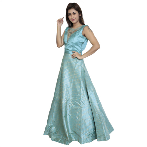 पिंक लेडीज़ फाइन एम्ब्रॉयडरी गाउन