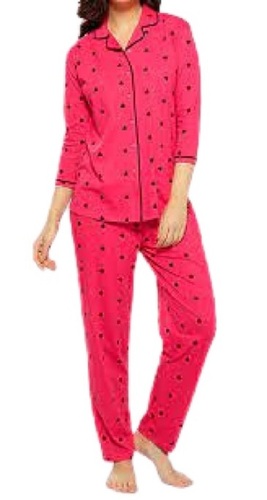 समर लेडीज़ फुल स्लीव पिंक ब्लैक प्रिंटेड कॉटन नाइटी सेट के साथ