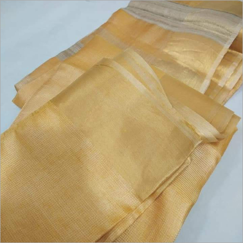 एथनिक लेडीज़ गोल्डन लिनन साड़ी