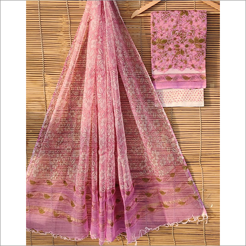 Explore in english - Ladies Hand Block Print Maheshwari Silk Suit