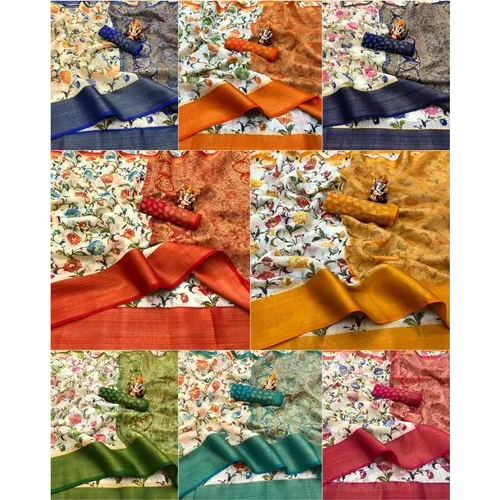 मल्टीकलर लेडीज़ लिनेन सिल्क साड़ी