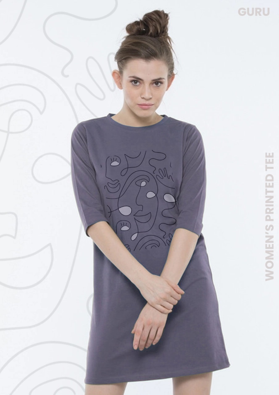 महिलाओं की लंबी टी शर्ट 3/4th आस्तीन