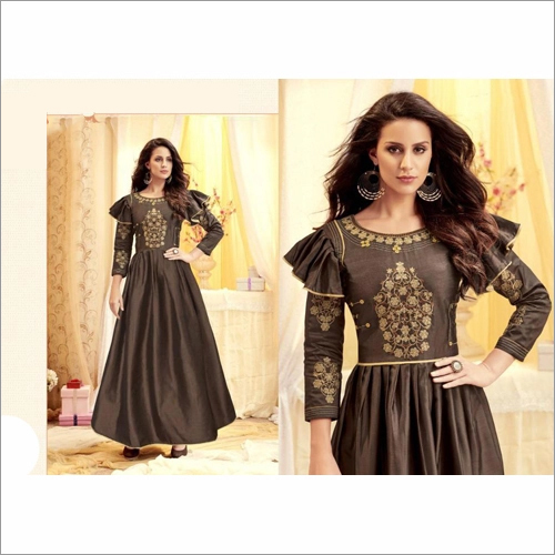 ग्रे लेडीज़ ग्रे कॉटन A-लाइन कुर्ती
