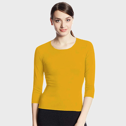 Explore in english - Ladies Mustard Yellow 3-4 Sleeve Scoop Neck T-Shirt