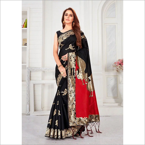 कैज़ुअल लेडीज़ नेवी ब्लू डिज़ाइनर सॉफ्ट बनारसी सिल्क साड़ी