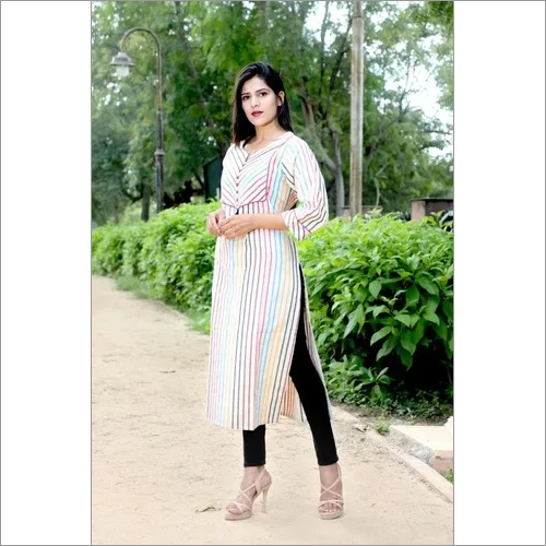 लेडीज़ प्रिंटेड रेयॉन कुर्ती - जय ाडेस्वर टेक्सटाइल