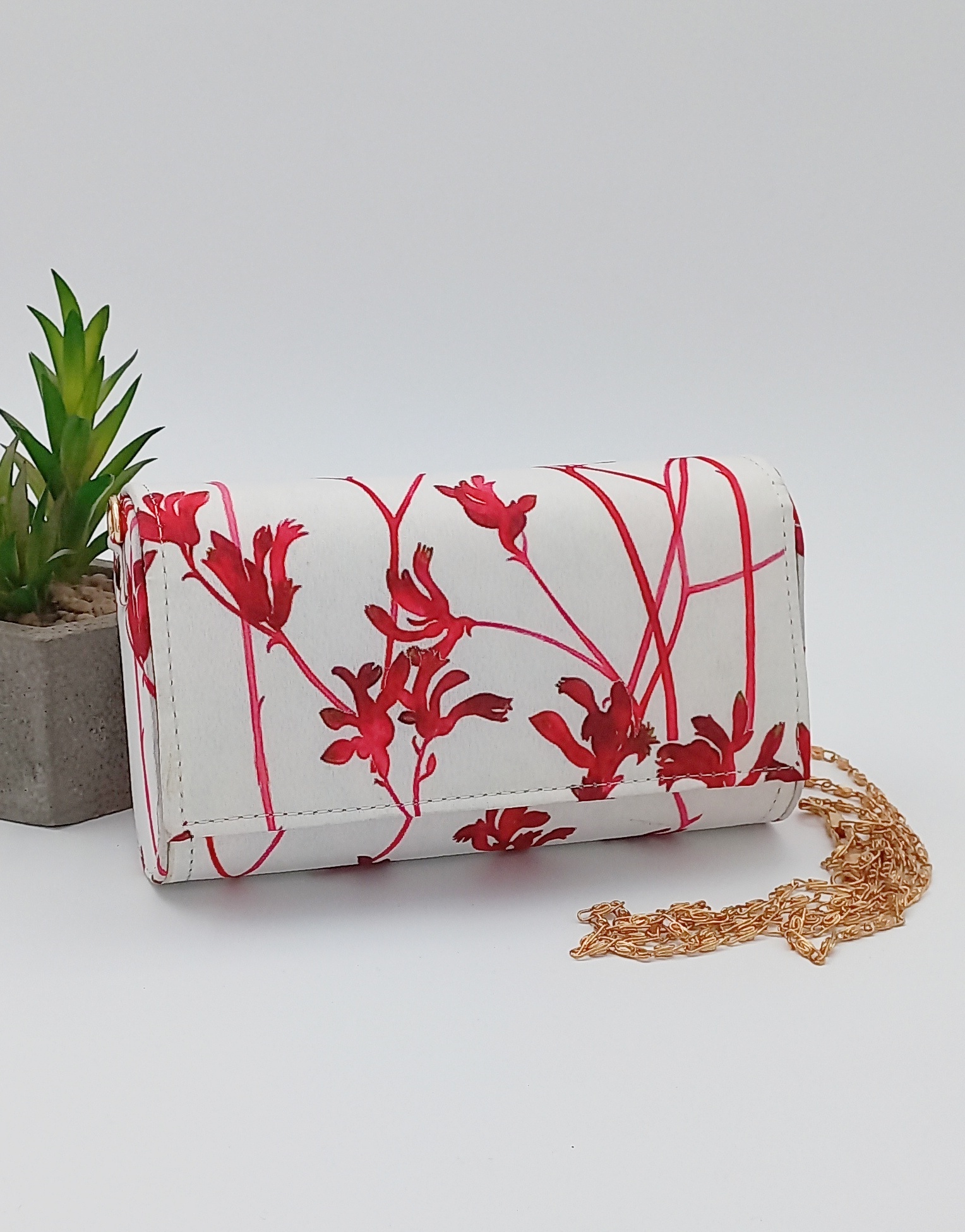 | रंग | White with red floral pattern |