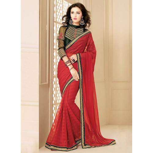 महिलाओं की लाल नकली शिफॉन साड़ी