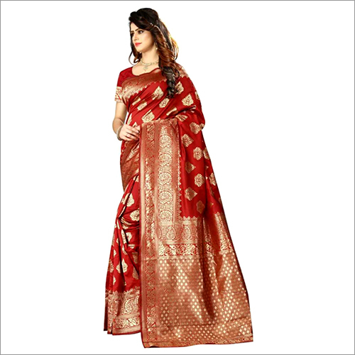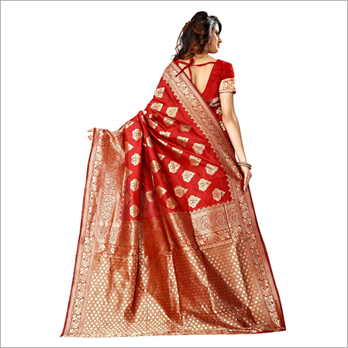Explore in english - Ladies Red Kajukatari Banarasi Saree