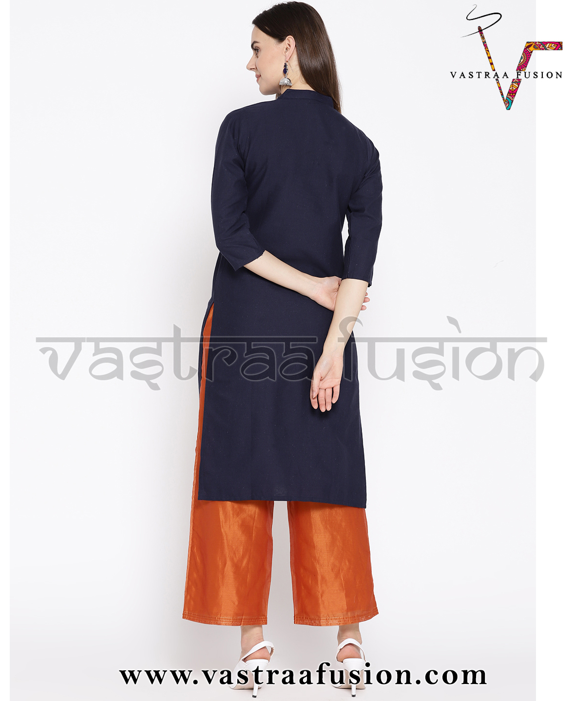 Explore in english - Ladies Solid Neck Embroidered Cotton Kurti