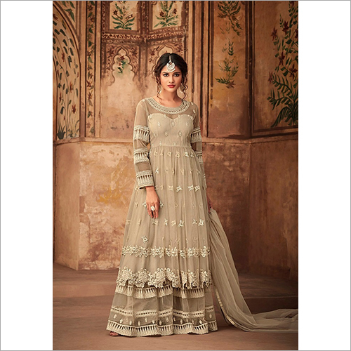 लाइट ब्राउन पार्टी वियर ट्रेडिशनल टिशू सिल्क सलवार कमीज