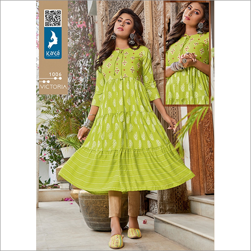प्रॉडक्ट टाइप | Ladies Yellow Rayon Karissa Kurtis |