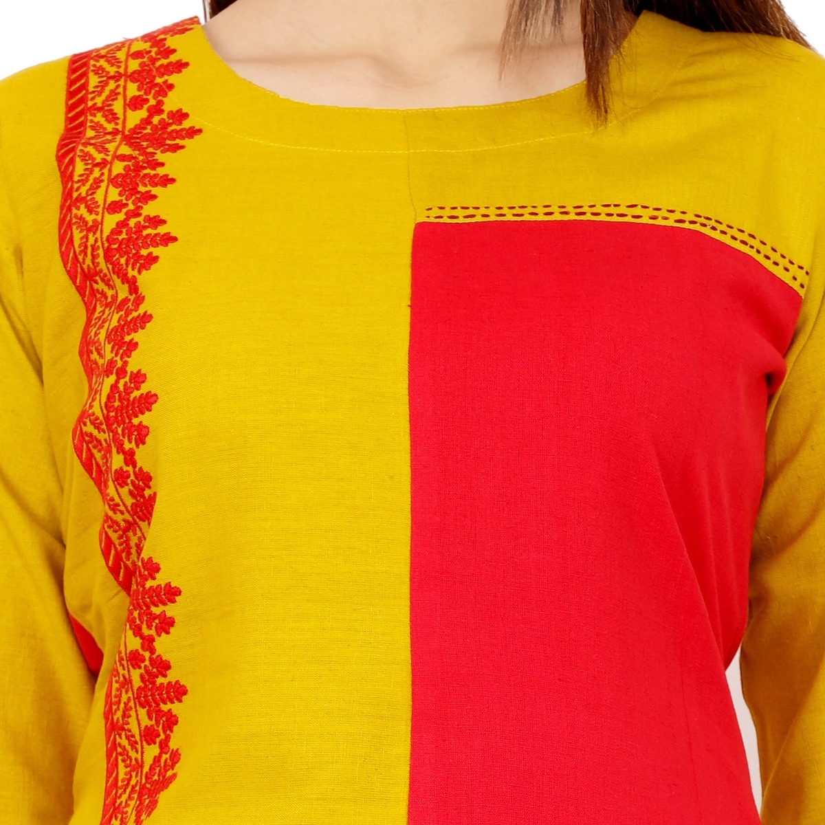 लाक्बी लाल कढ़ाई वाली सिधी सूती कुर्ती