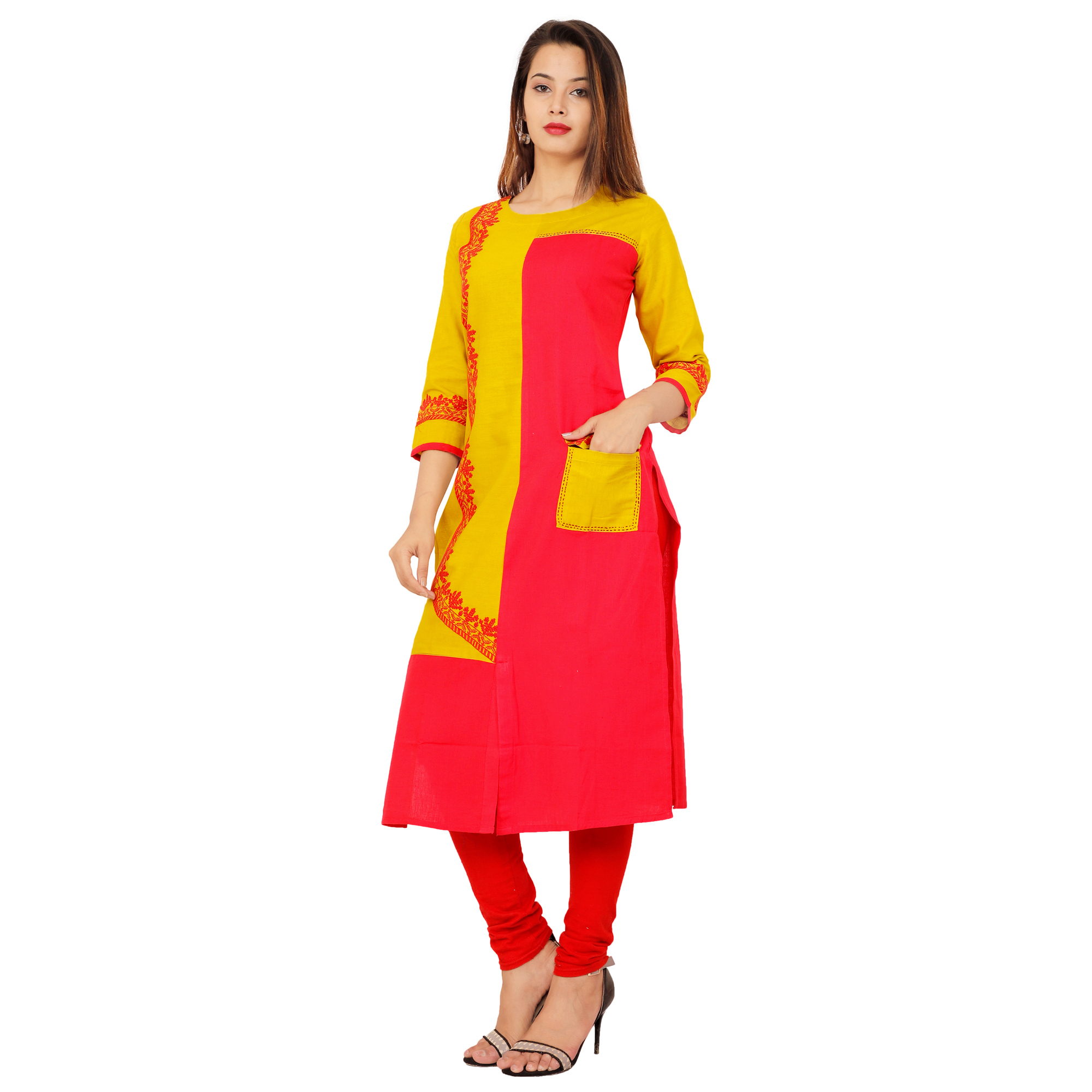 Explore in english - Lakbi Red Embroidery Straight Cotton Kurti