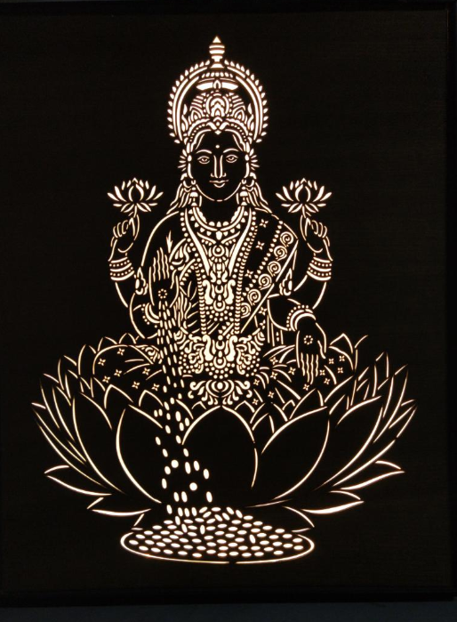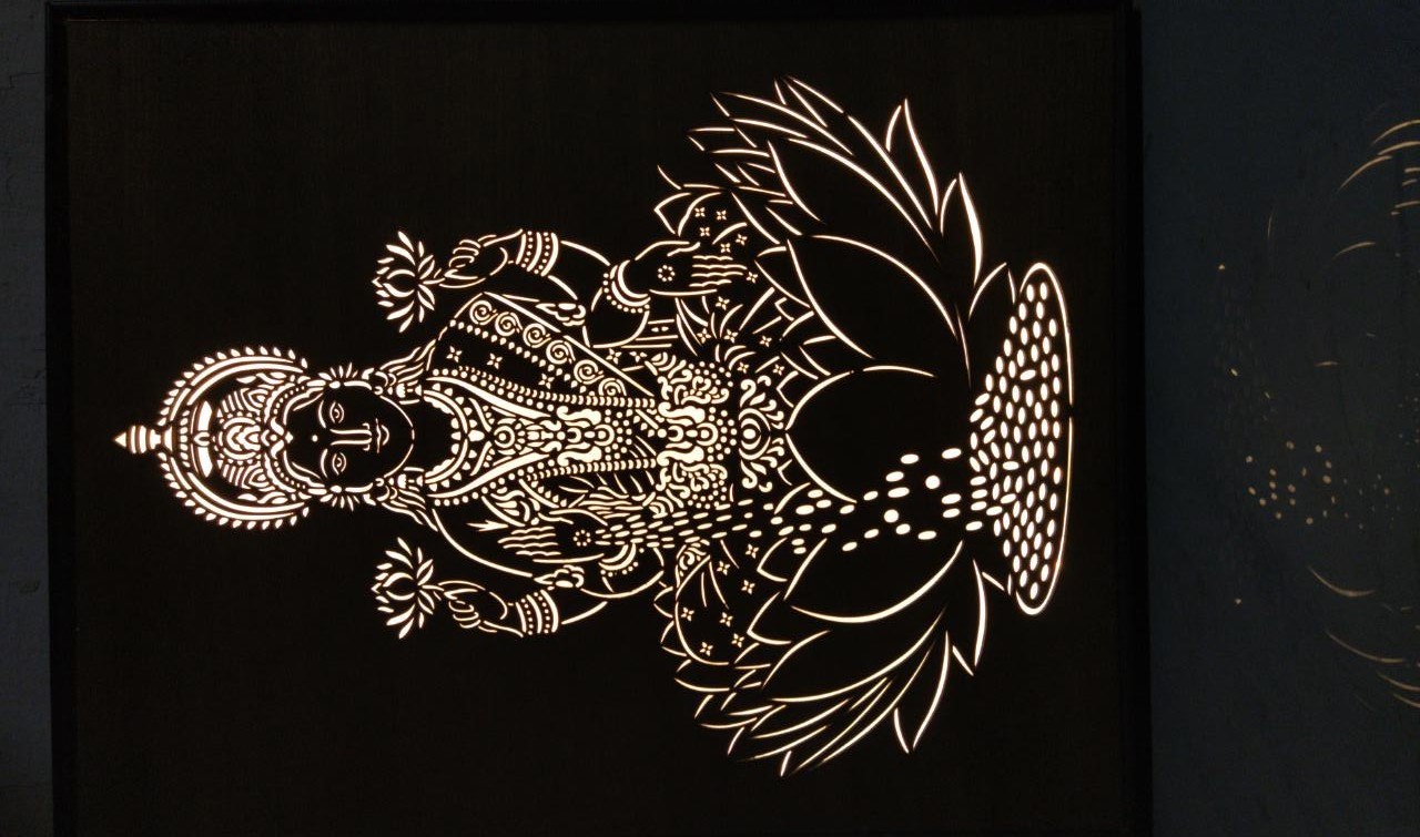 लक्ष्मी वुडन बैकलिट लेजर कट वॉल हैंगिंग