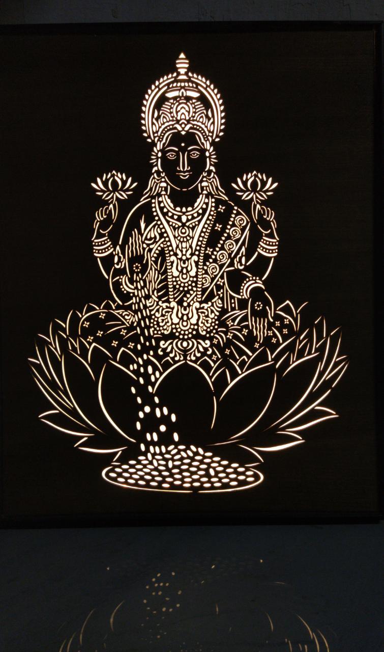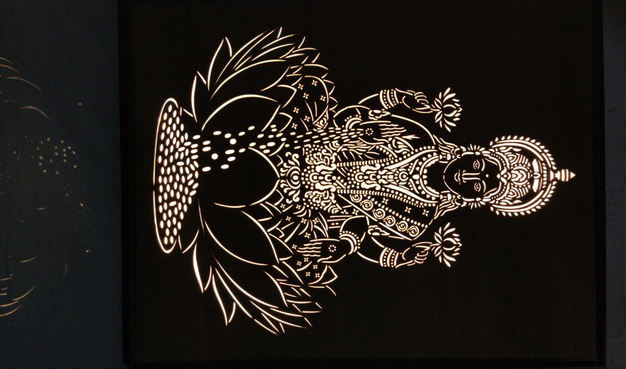 Explore in english - Lakshmi Wooden Backlit Laser Cut Wall Hanging