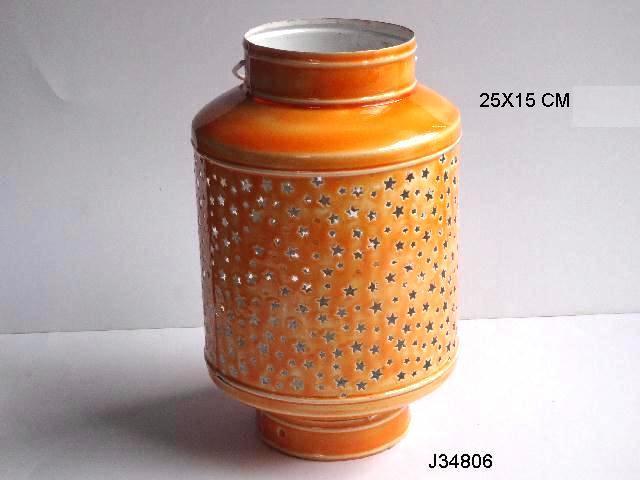 मेटल लैंटर्न सिरेमिक फिनिश ब्राउन कलर