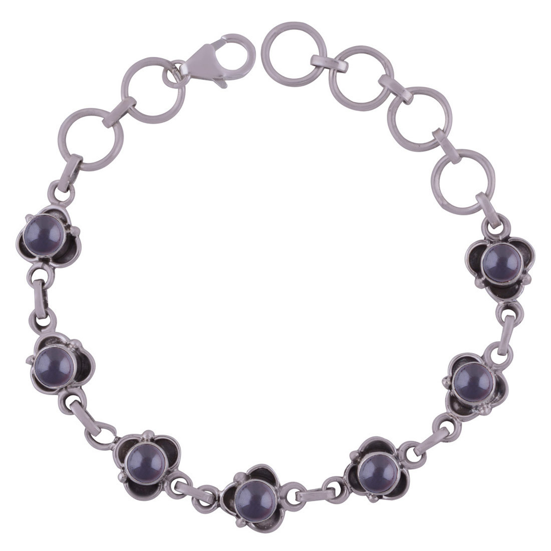 Explore in english - Lapis Natural Gemstone 925 Sterling Solid Silver Round Cabochon Handmade Bracelet