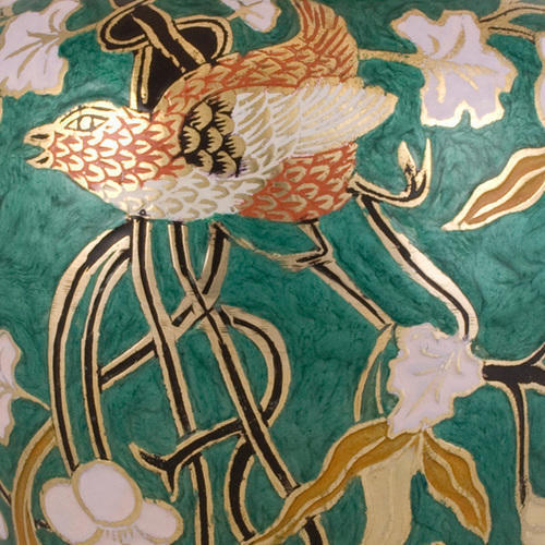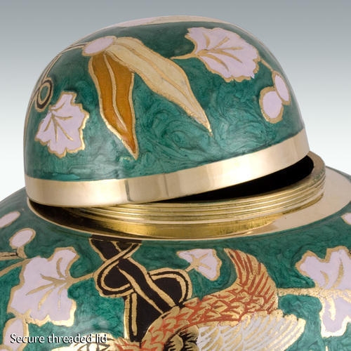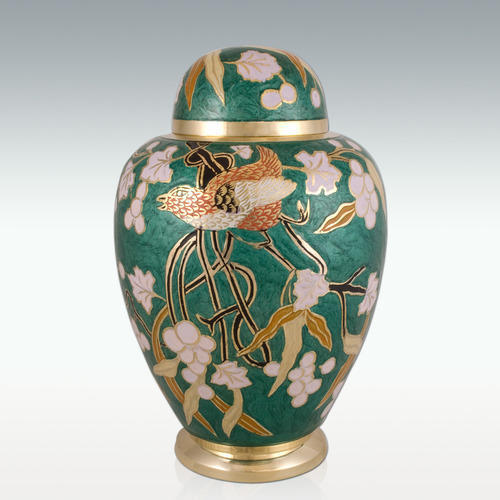 बहु-रंग बड़े अल्पाइन पक्षी और फूल पीतल श्मशान कलश