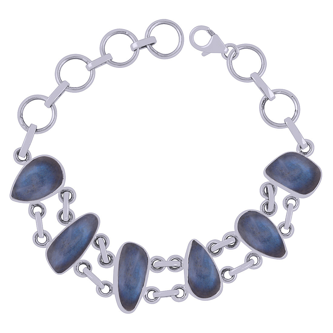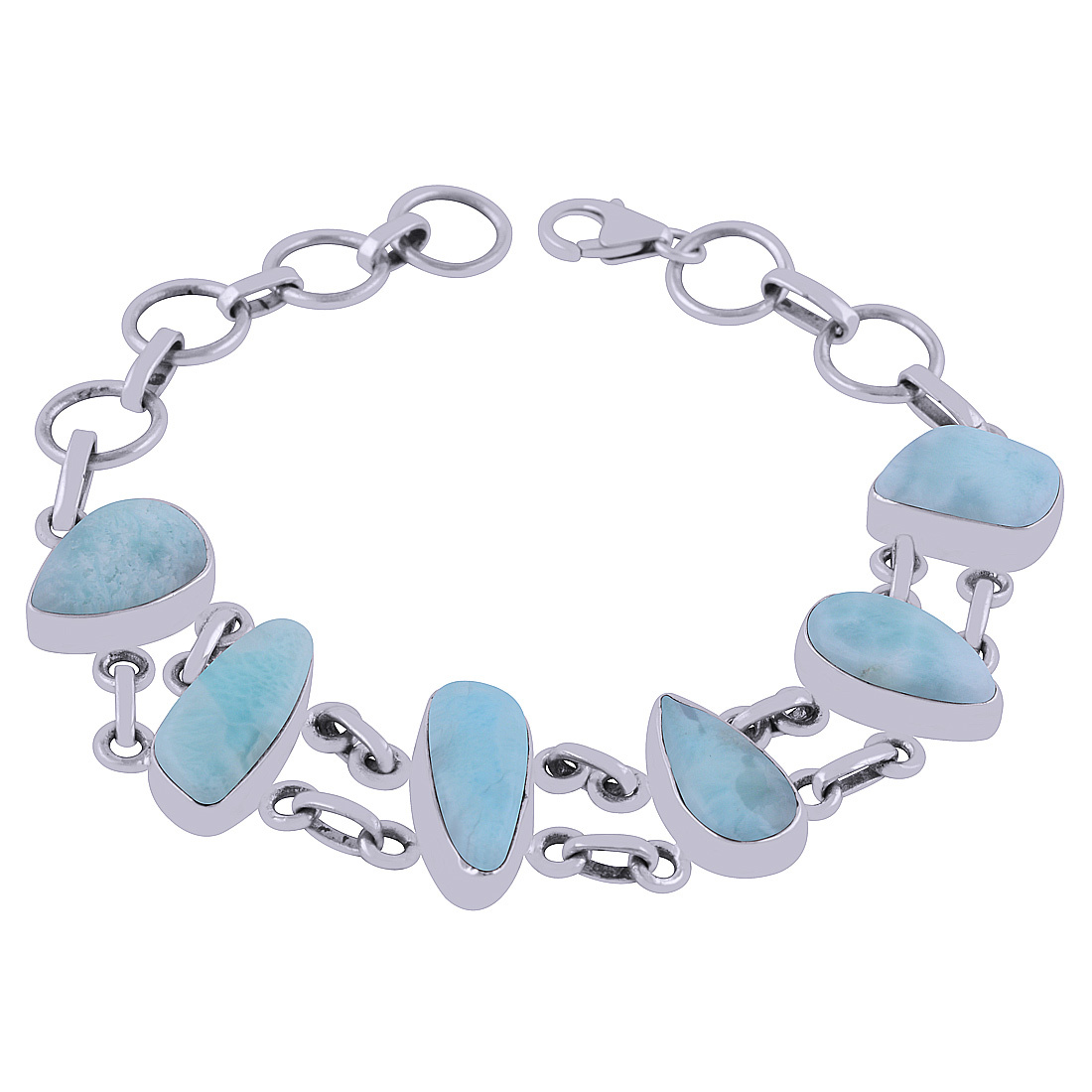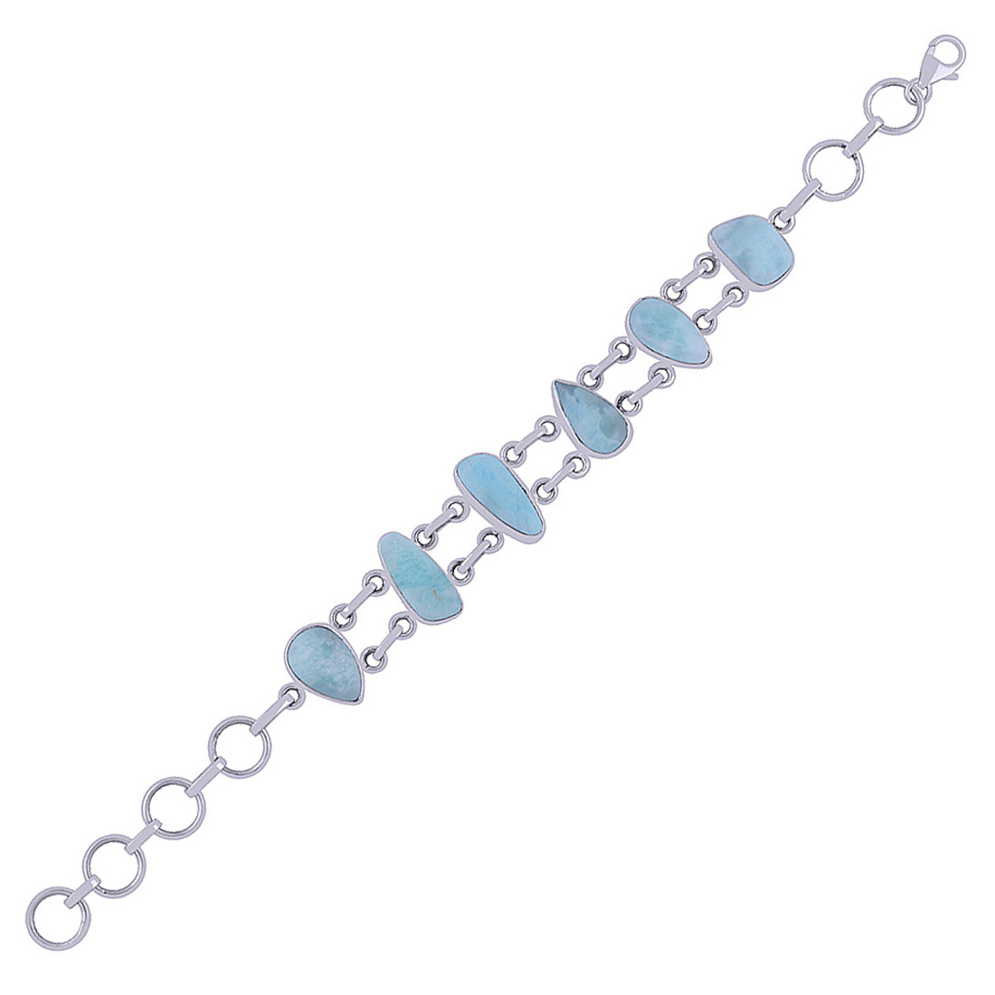 लारिमार नेचुरल जेमस्टोन 925 स्टर्लिंग सॉलिड सिल्वर अनियमित कैबोचोन हैंडमेड ब्रेसलेट डायमीटर: एक्स्ट्रा एडजस्टेबल 7 इंच X चौड़ाई 15 इंच (इंच)