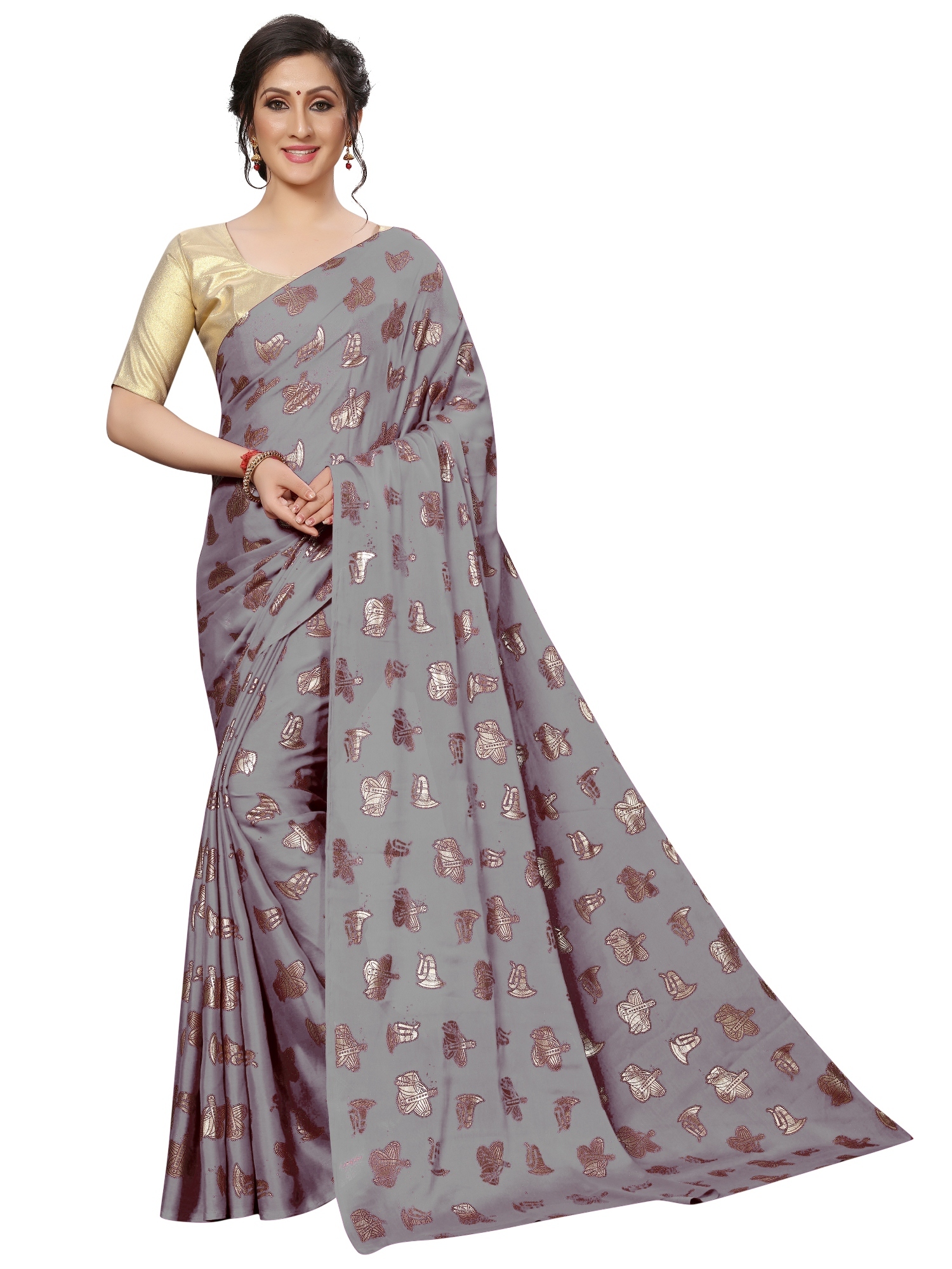 क्रीम रंग की महिलाओं की क्रश चिनोन साड़ी ब्लाउज़ और कमर बेल्ट के साथ