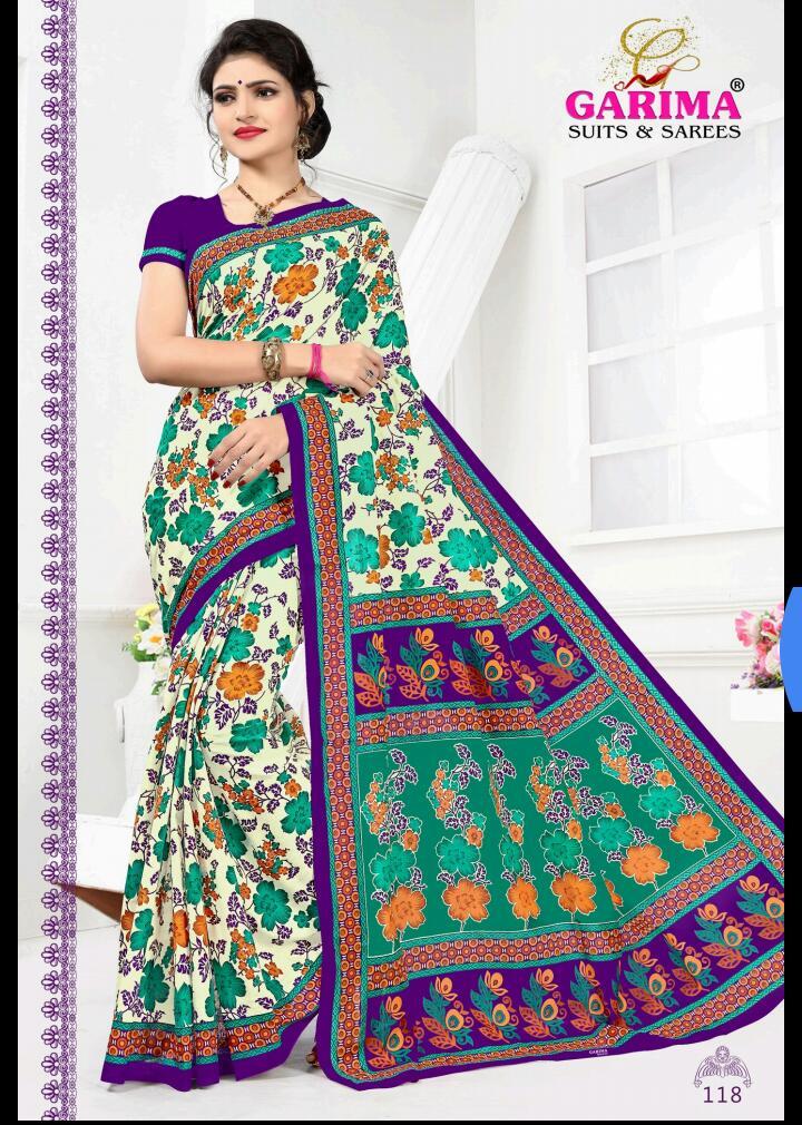 ब्लू लेटेस्ट कॉटन प्रिंटेड साड़ियों का कैटलॉग