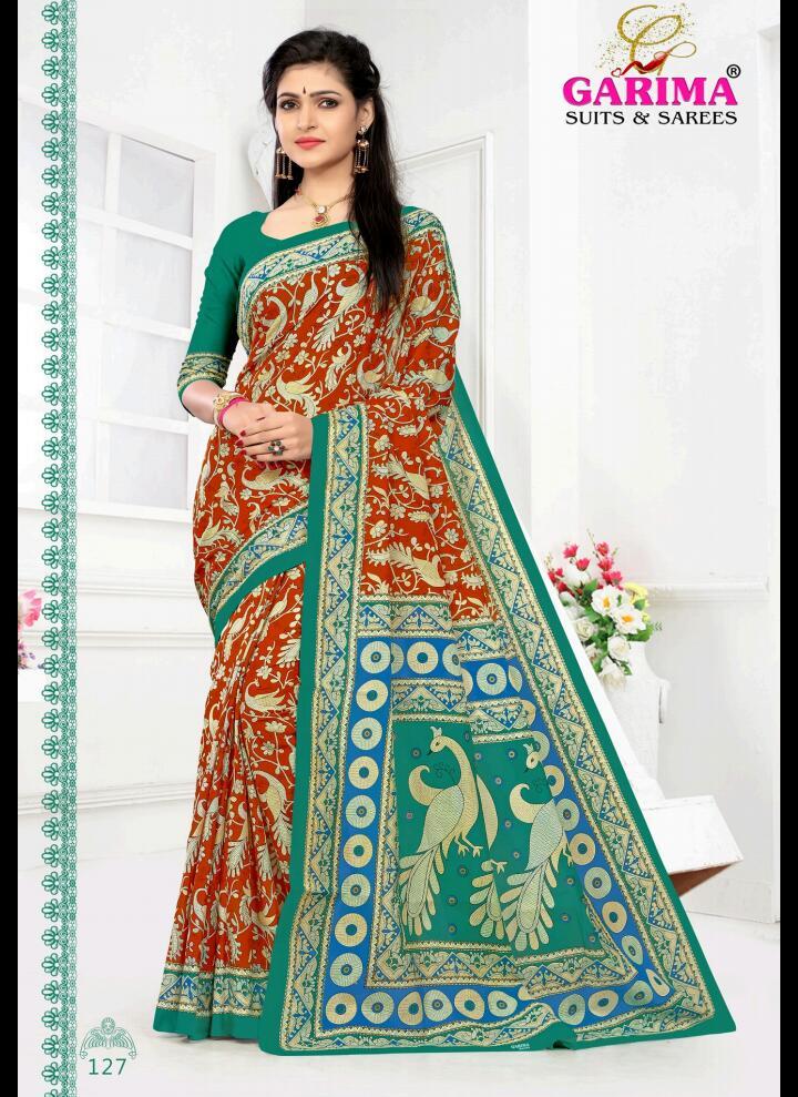 मल्टी कलर 100% कॉटन प्रिंटेड साड़ी कट 5.50 मीटर B.P. 0.80 सेंटीमीटर के साथ
