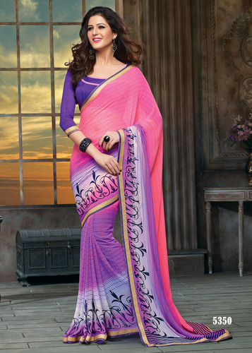 क्रीम रंग की महिलाओं की क्रश चिनोन साड़ी ब्लाउज़ और कमर बेल्ट के साथ