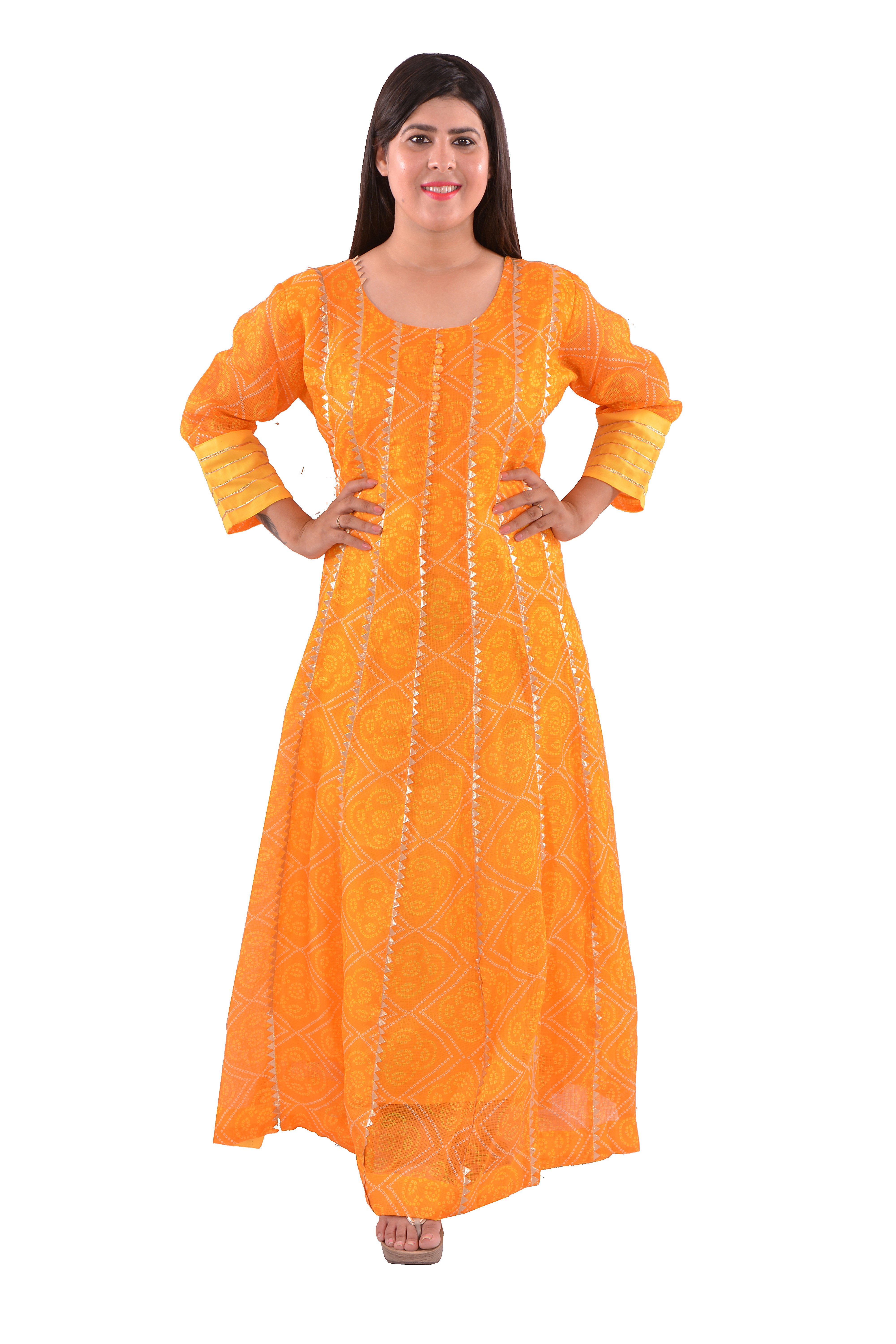 मिश्रित महिलाओं के लिए 3/4 स्लीव घुटने की लंबाई वाली प्रिंटेड अनारकली कुर्ती
