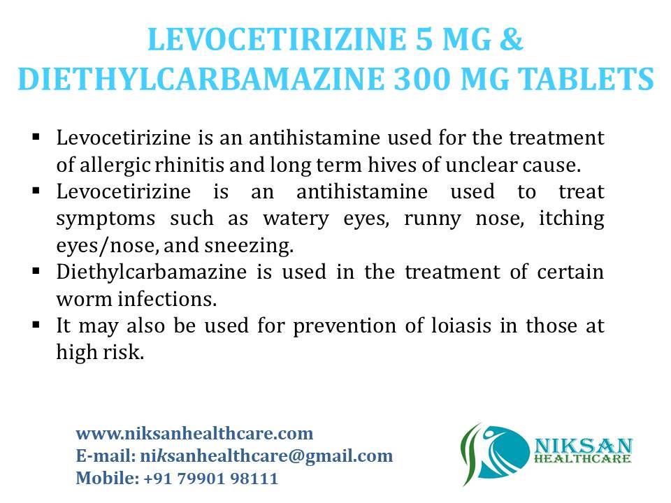 Explore in english - LEVOCETIRIZINE 5 MG &DIETHYLCARBAMAZINE 300 MG TABLETS