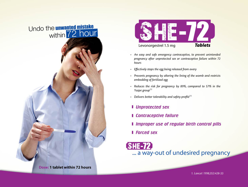 | उपचार और कार्य | ndications : Contraceptive failure. Unprotected sex. Improper use of your regular birth control method & Forced sex. Dosage : Just one pill within 72 hours of unprotected sex. Sooner the better |